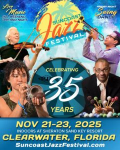 11/30 2-5pm HIGHLIGHTS FROM the 35th SUNCOAST JAZZ FESTIVAL CONCERTS THANKSGIVING SPECIAL PROGRAMS We will post the concert program line-up today for our Sunday Afternoon Concert Hall! RadioStPete is THRILLED to share some of the fabulous local and headliner performances from the sold-out festival 11/21-23. In addition to headliners Jason Marsalis, Ken Peplowski, Diego Figuerado and Wycliffe Gordon, folks were wowed by Professor Cunningham and His Old School, Dave Bennett Quartet, Tom Rigney and Flambeau, St. Louis Stompers, Chuck Redd, Ehud Asherie, Jonathan Russell, Bakey and Betty! Featuring Florida’s best musicians, bands and singers including Simon Lasky – Arenas, Lasky & Nash, Allison Nash, Theo Valentin, La Lucha, Bob Price, Joe Porter, Paul Wilborn and Eugenie Bondurant, The Jazz Phools, Al Downing Trio, Naples Jazz Society Jazz Band, The Legendary John Lamb, James Suggs, Jeremy Carter, Bryan J. Hughes and the Crew, Don Mopsick, Nate Najar, Daniela Soledade, Heather Thorn, Eddie Metz, Carl Amundson and more! 👉Thanks to Joan Dragon, President and RockThePlanet’s Erik and Mary Koch for their audio help!